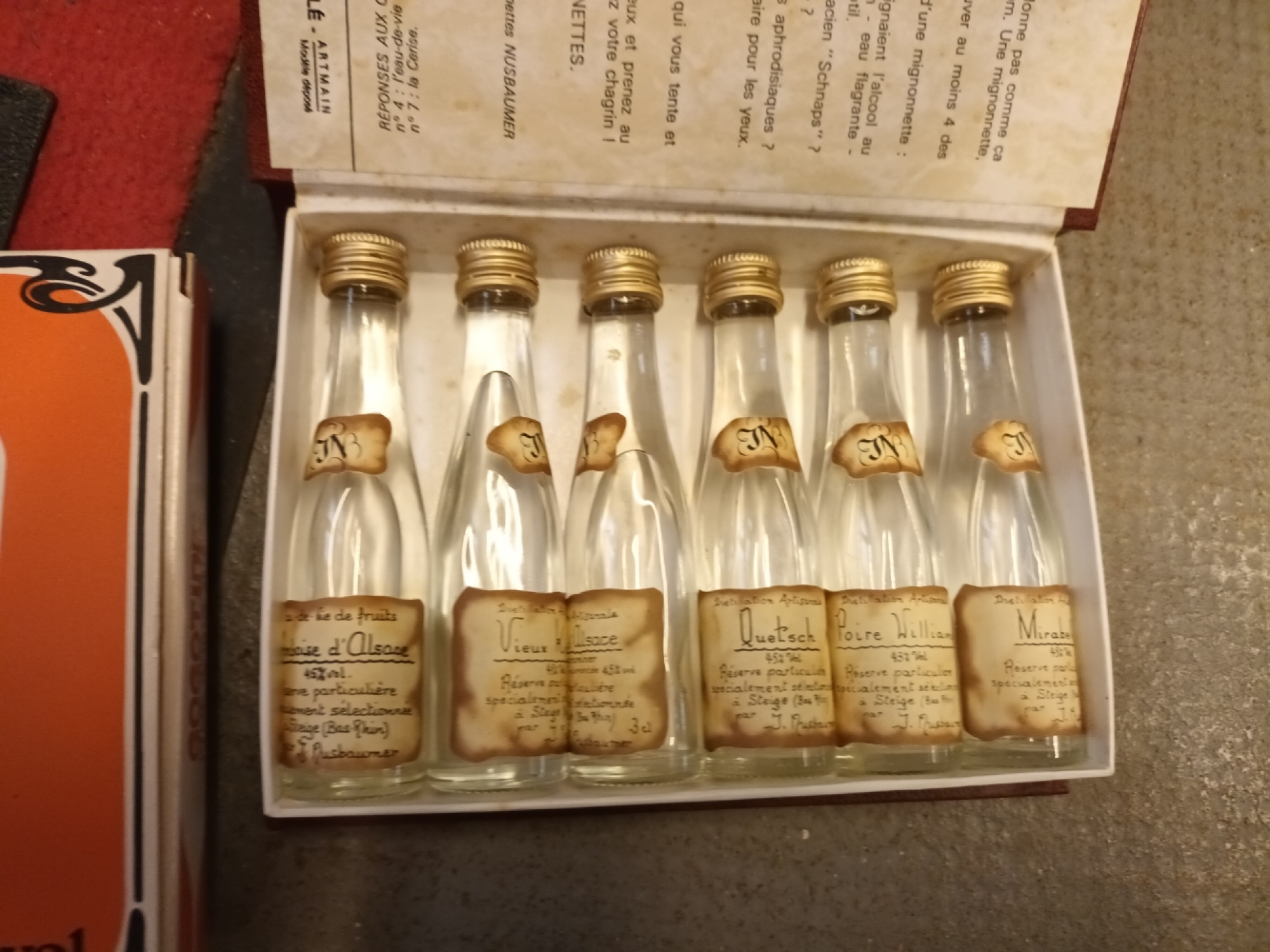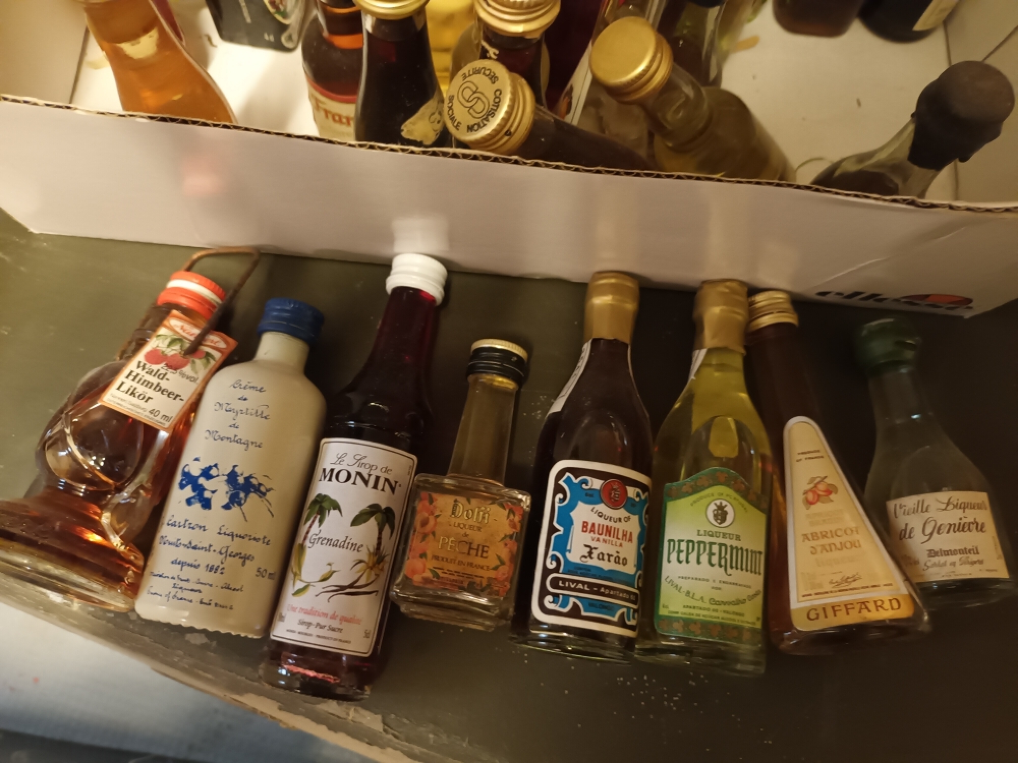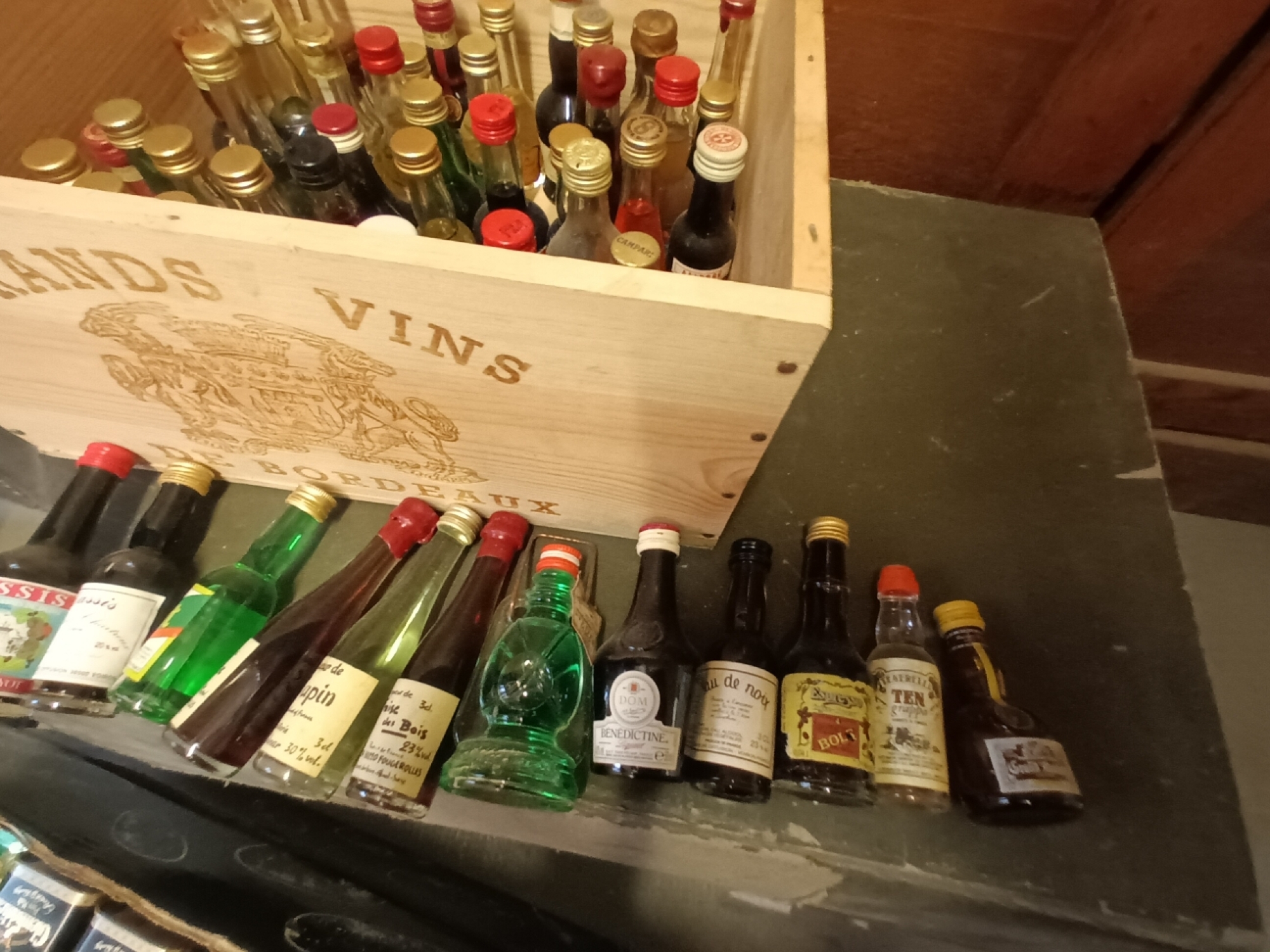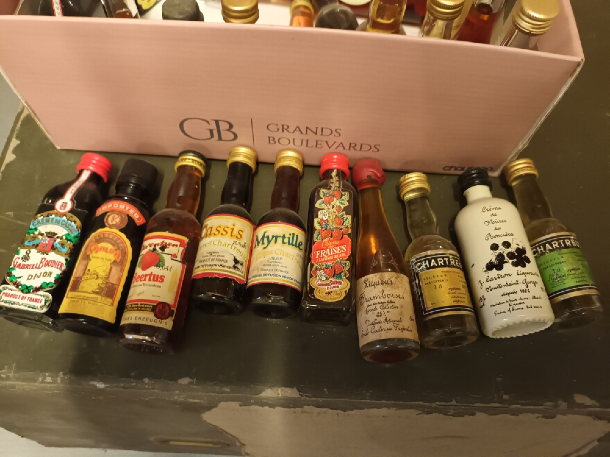 puis des alcools divers : de fruits, des alcools autrichiens, italiens, de la chartreuse.